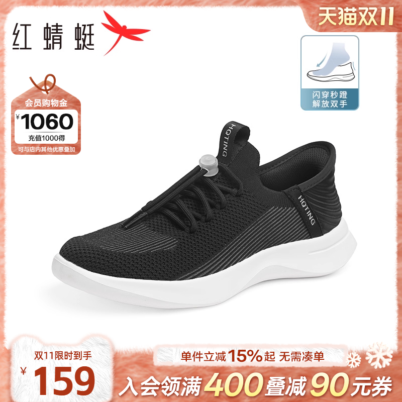 红蜻蜓男士夏季运动鞋高端休闲网面鞋一脚蹬透气中老年爸爸健步鞋