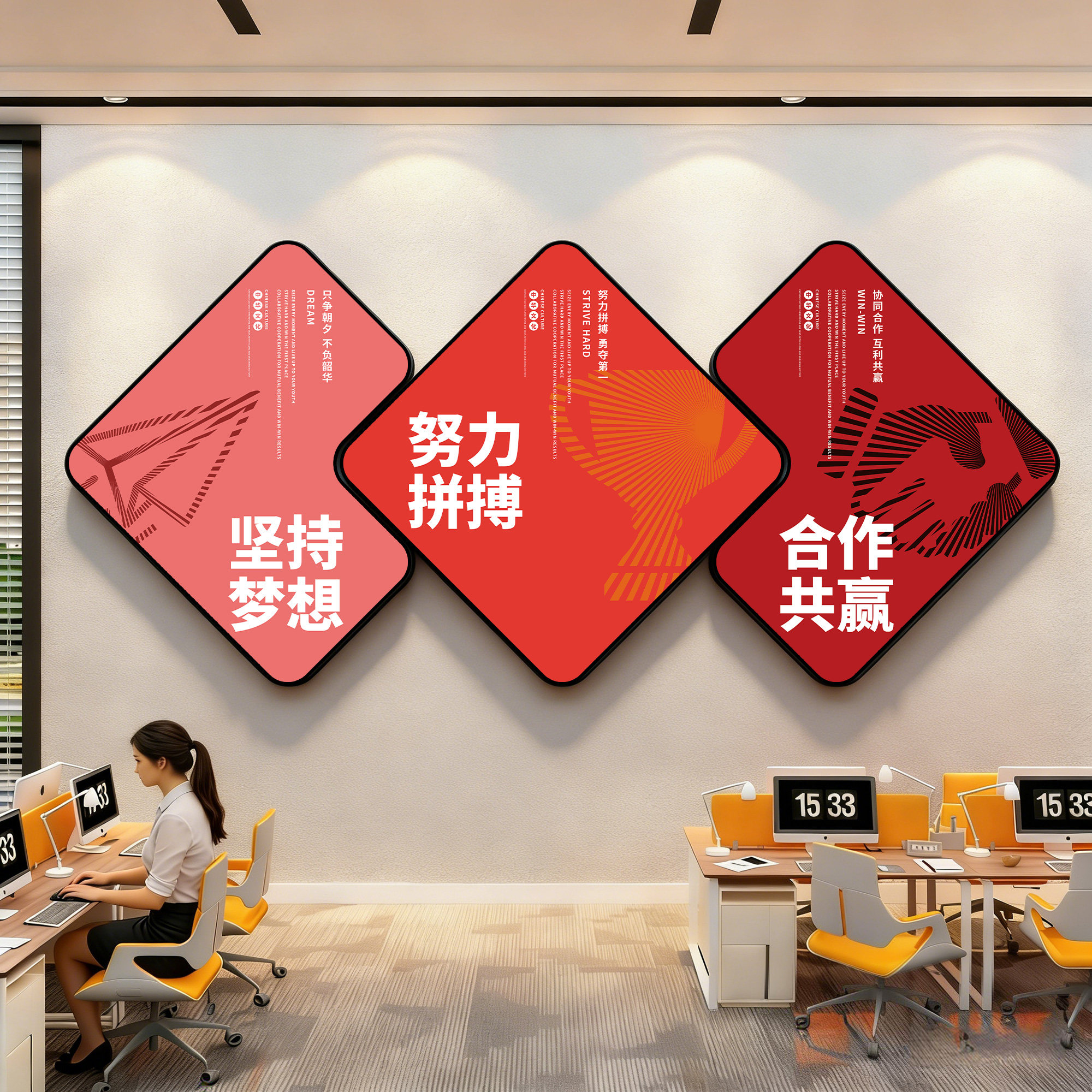 企业文化墙办公室墙面装饰氛围布置公司进门形象背景励志标语挂画