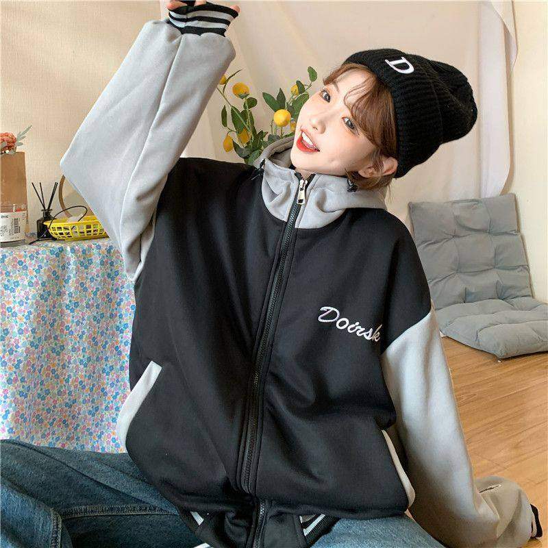 设计感小众卫衣外套女秋冬季韩版宽松bf慵懒风加绒加厚棒球服开衫