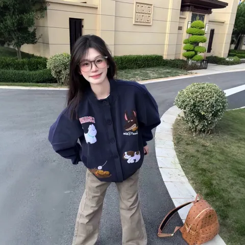 春秋新款2025慵懒风宽松bf棒球服外套女韩版百搭开衫卫衣休闲上衣