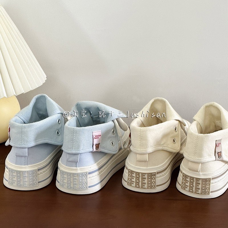 路十三多巴胺高帮帆布鞋女厚底2024新款鞋子夏季百搭学生女款布鞋