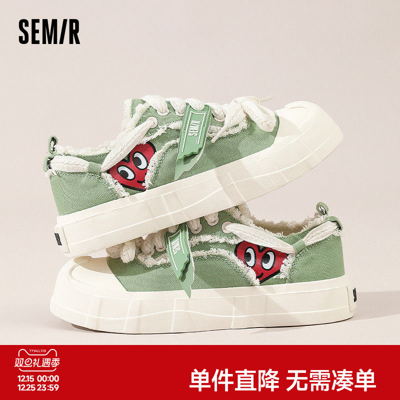 Semir帆布鞋女鞋2025秋冬新款厚底透气小白鞋女款布鞋百搭布鞋女