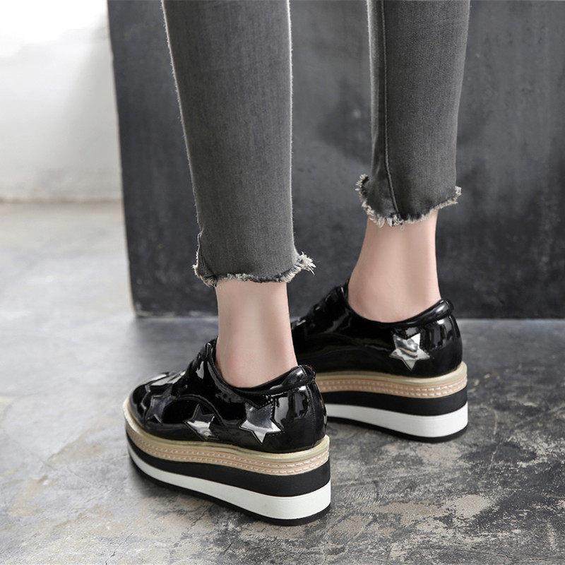 韩版布洛克厚底松糕鞋女真皮系带小皮鞋百搭增高鞋单鞋女鞋6670-1