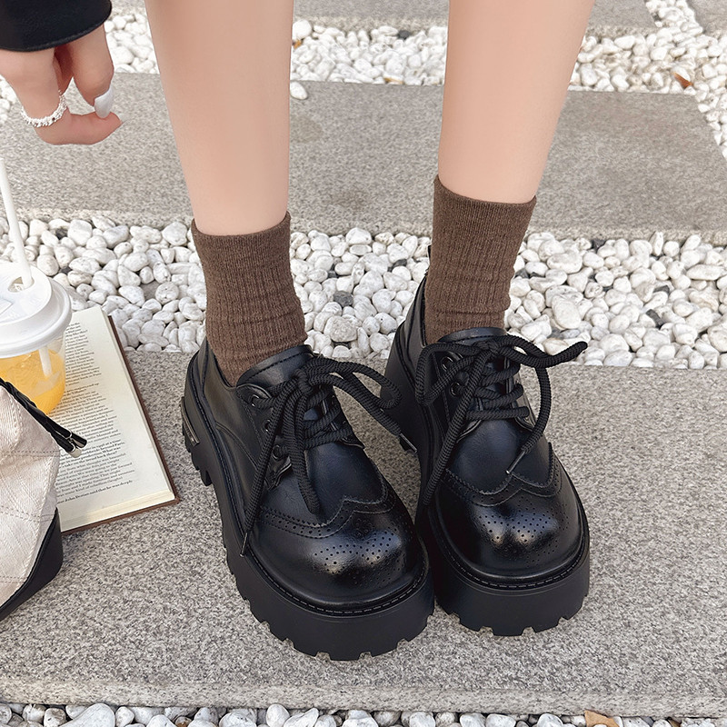 英伦风松糕厚底布洛克鞋女款复古百搭系带增高小皮鞋休闲德比单鞋