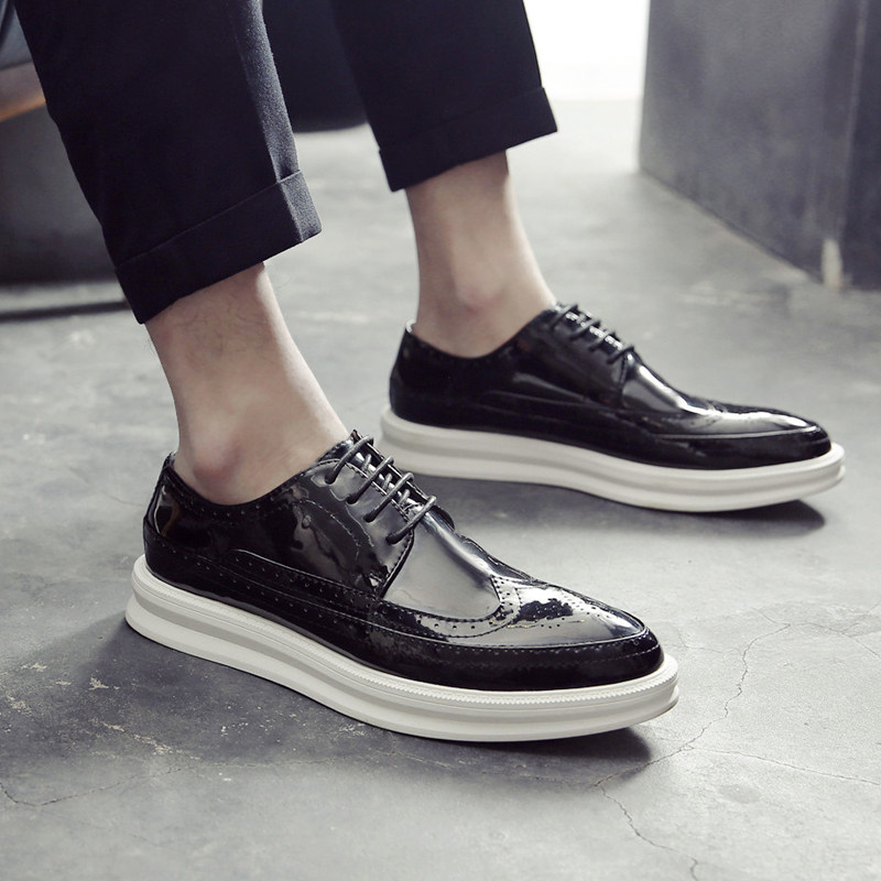 2024夏季亮面男鞋男士厚底增高松糕鞋男休闲皮鞋布洛克雕花男鞋