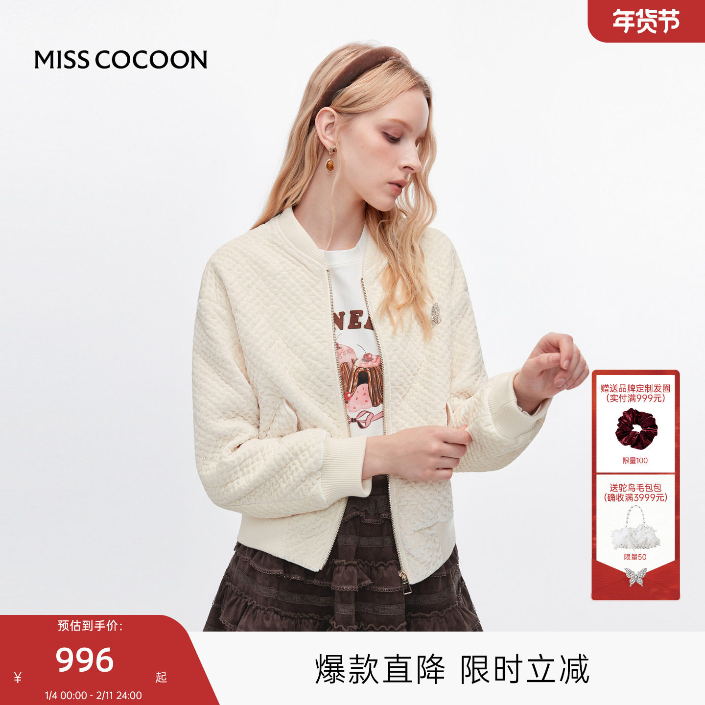 MISSCOCOON可可尼白色夹克外套女2025秋冬新款休闲复古丝绒棒球服