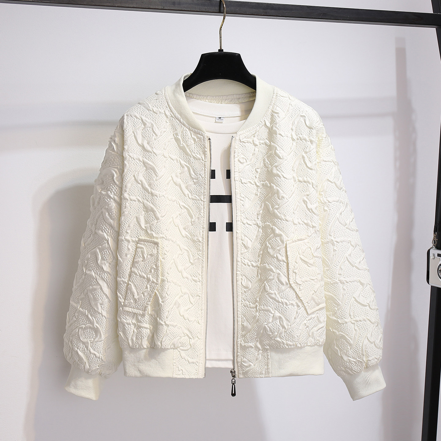 白色气质蕾丝长袖棒球服外套女2025新款冬季重工短款刺绣拉链上衣