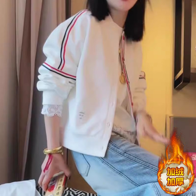 绝美巨好看的冬装白色棒球服小香风短款加绒加厚保暖羊羔绒外套女