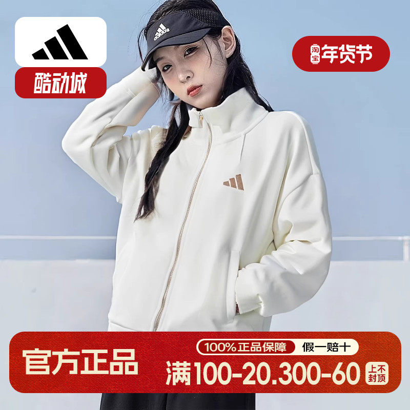 阿迪达斯棒球服女外套秋季新款针织白色美式纯棉运动休闲宽松夹克