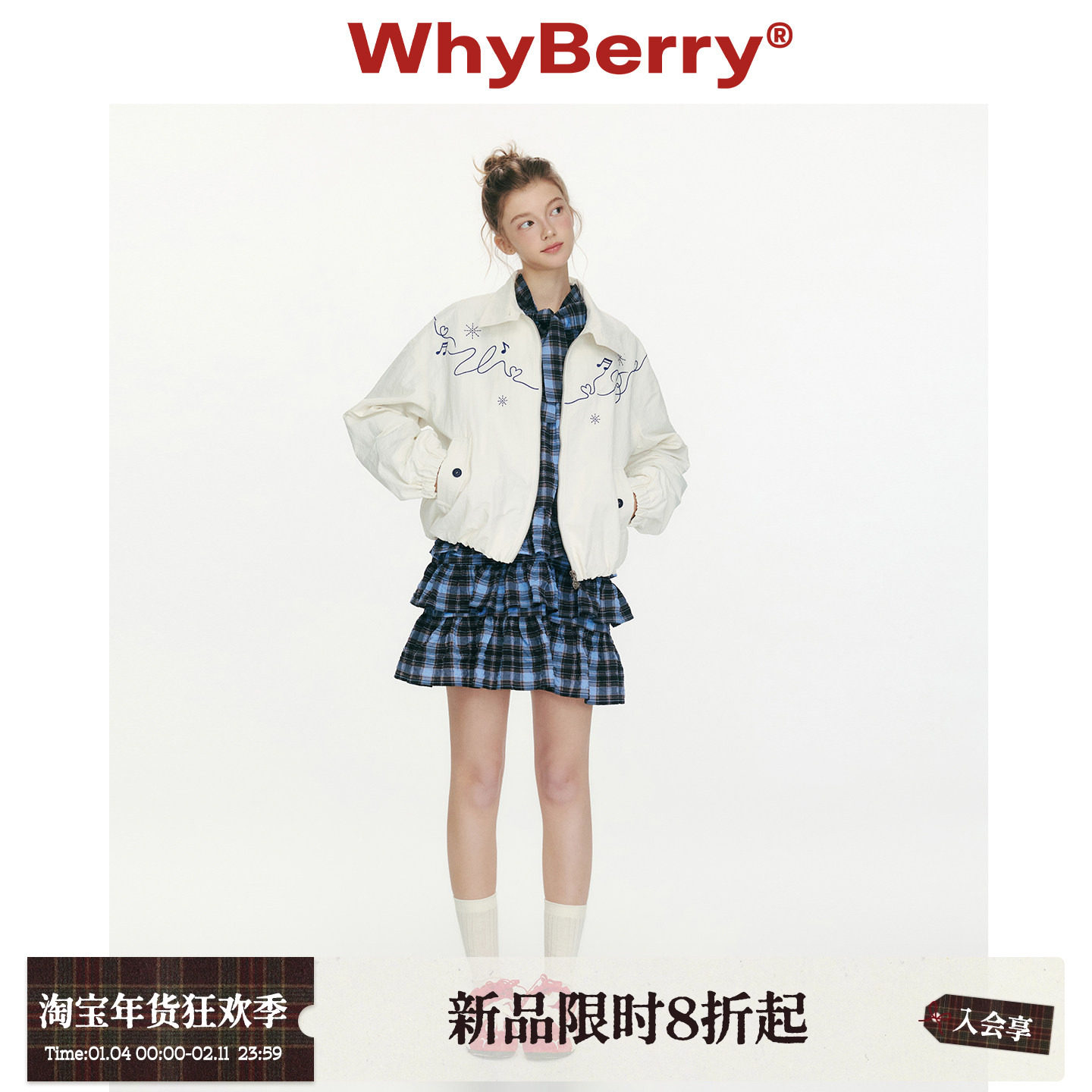 WhyBerry 26SS“跃动轨迹”白色绣花夹克小众设计感棒球服外套女