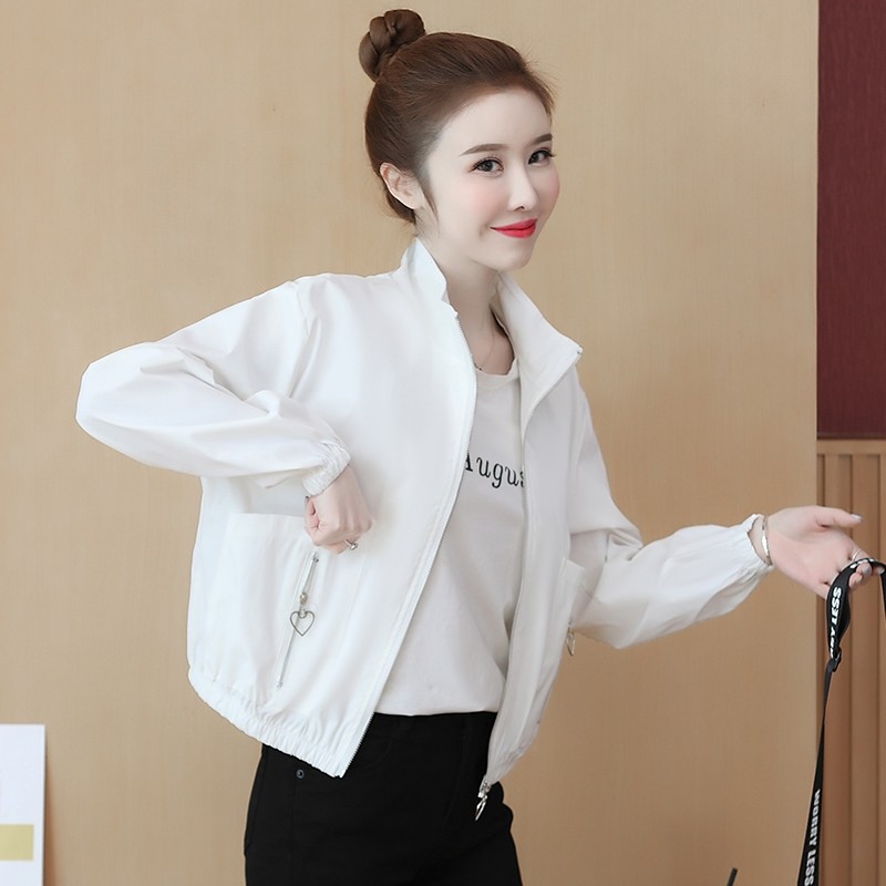 韩国时尚短款夹克外套女春秋新款休闲拉链开衫薄款白色棒球服上衣
