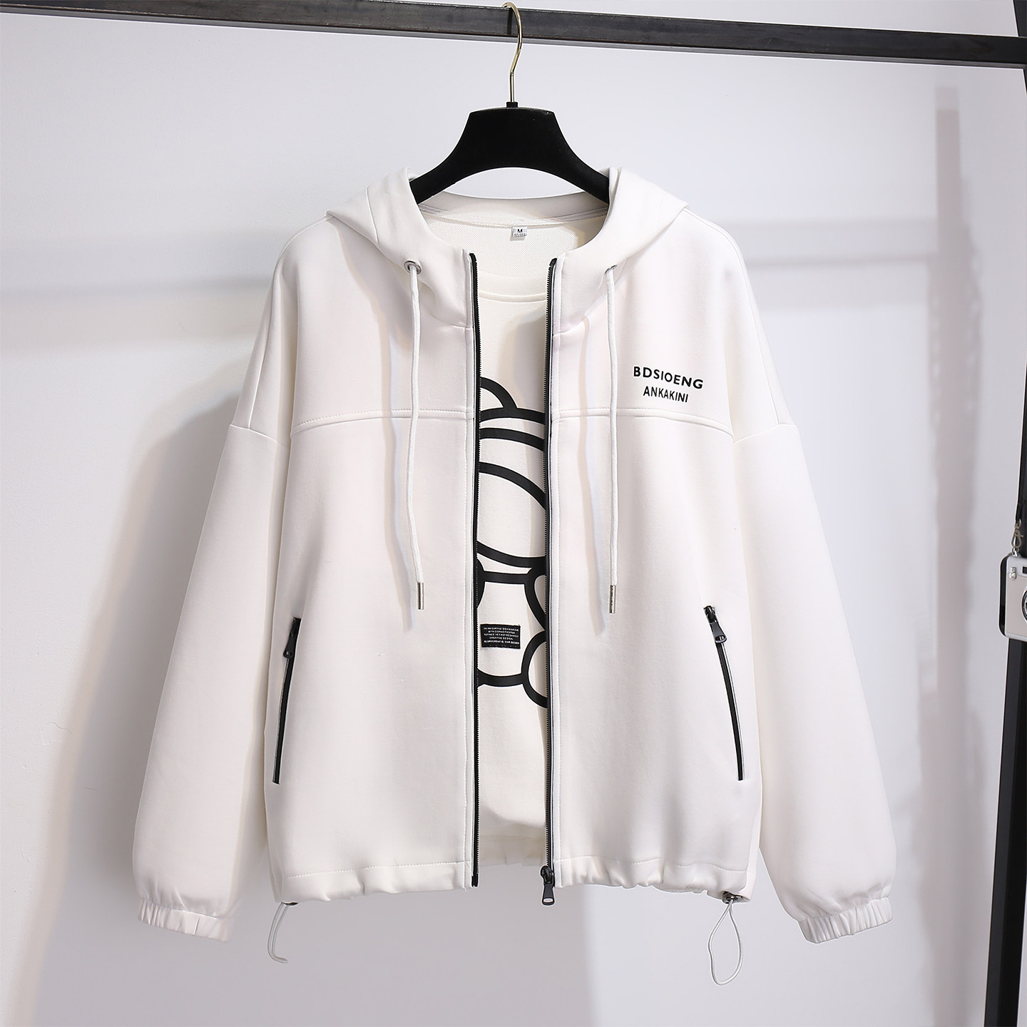 白色连帽拉链卫衣开衫外套女士2026春秋季新款宽松休闲百搭棒球服