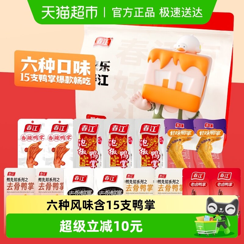 春江招财鸭掌元气礼包412g含15支独立小包泡椒鸭爪无骨柠檬酸辣