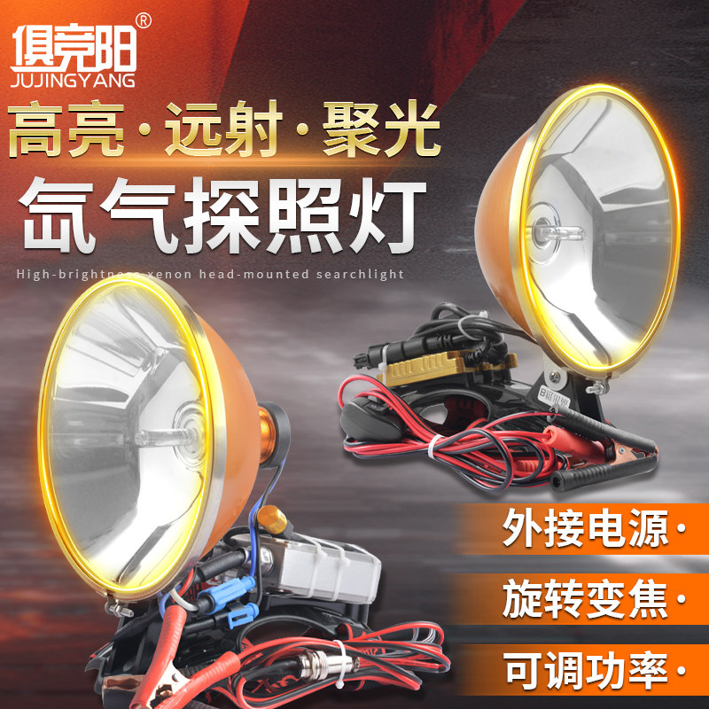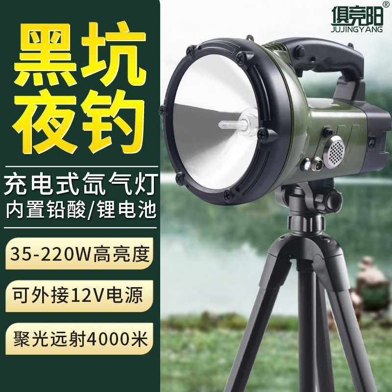俱竞阳HID氙气充电防水探照灯55W夜钓灯车载强光远程外接电源双灯
