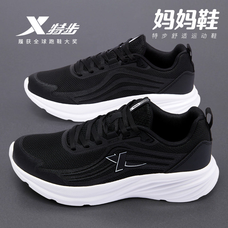 特步女鞋官方旗舰正品网面轻便中年妈妈运动鞋软底母亲减震跑步鞋