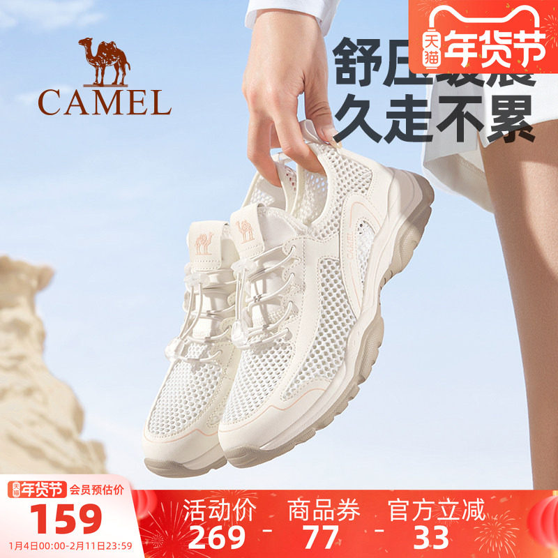 骆驼女鞋2025秋季新款网面透气镂空户外休闲鞋女防滑妈妈运动鞋子