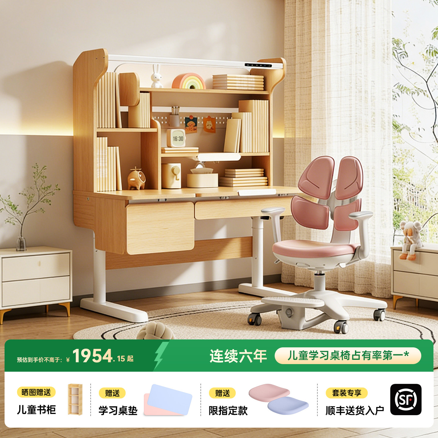 护童灯桌一体实木儿童学习桌学生可升降写字书桌椅星辰1号Pro Max