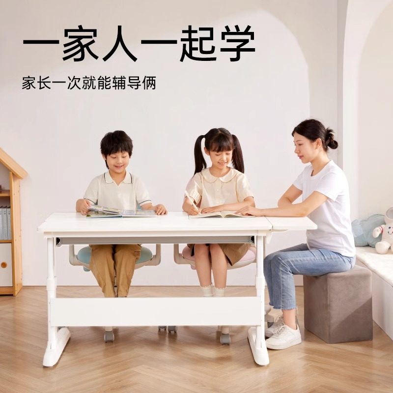 护童儿童学习桌小学生可升降书桌家用写字桌椅套装简约百搭大白桌