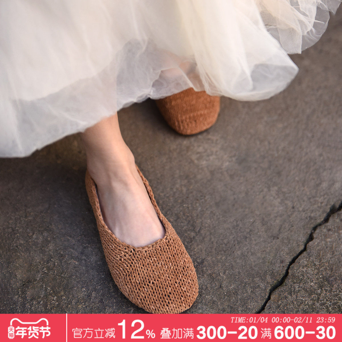 MILLIE'S/妙丽2025新款法式复古编织单鞋女平底舒适软底