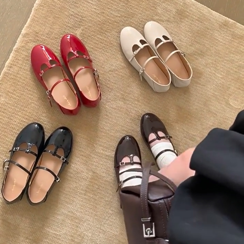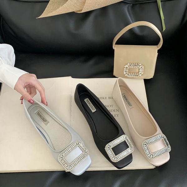 2026新款韩式水钻方扣浅口单鞋女平底玛丽珍鞋温柔风一脚蹬晚晚鞋