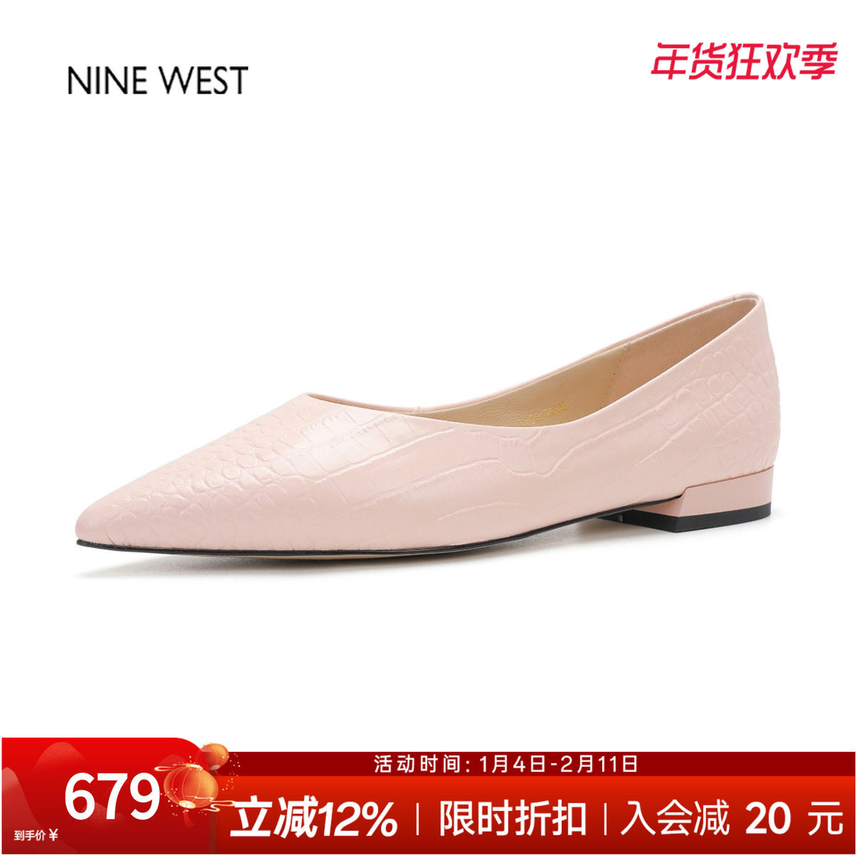 奥莱专供Nine West/玖熙气质浅口单鞋女平底女鞋软底温柔风单鞋