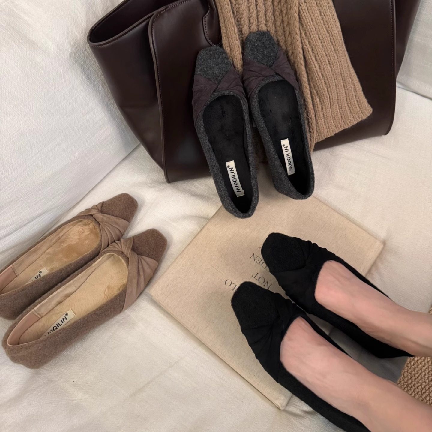 方头浅口加绒一脚蹬2025年秋冬百搭单鞋女平底软底通勤奶奶鞋温柔