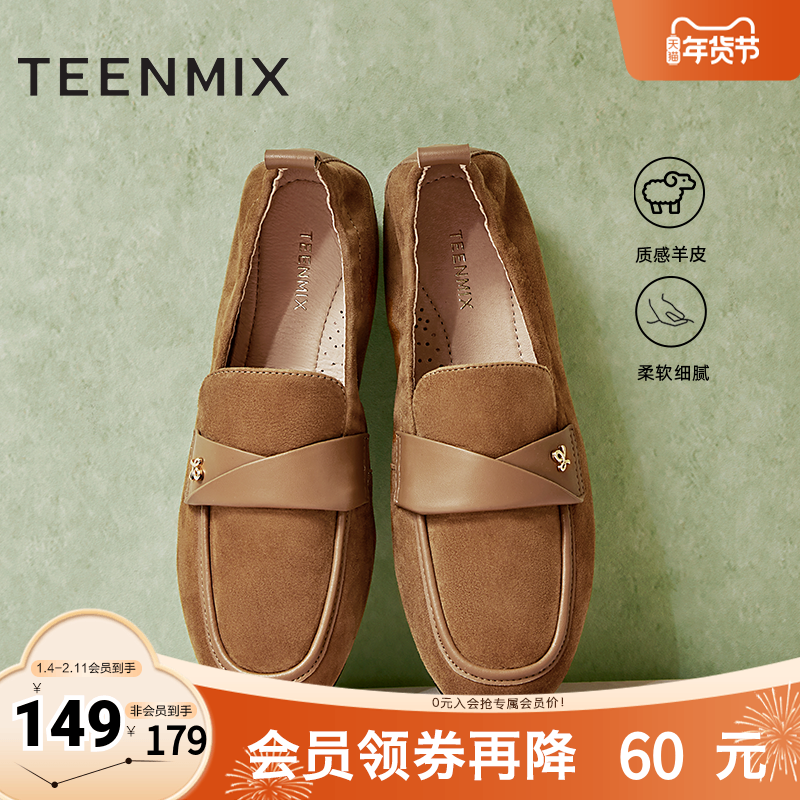 天美意复古英伦乐福鞋休闲单鞋女平底小皮鞋春秋新款CPC11CA4
