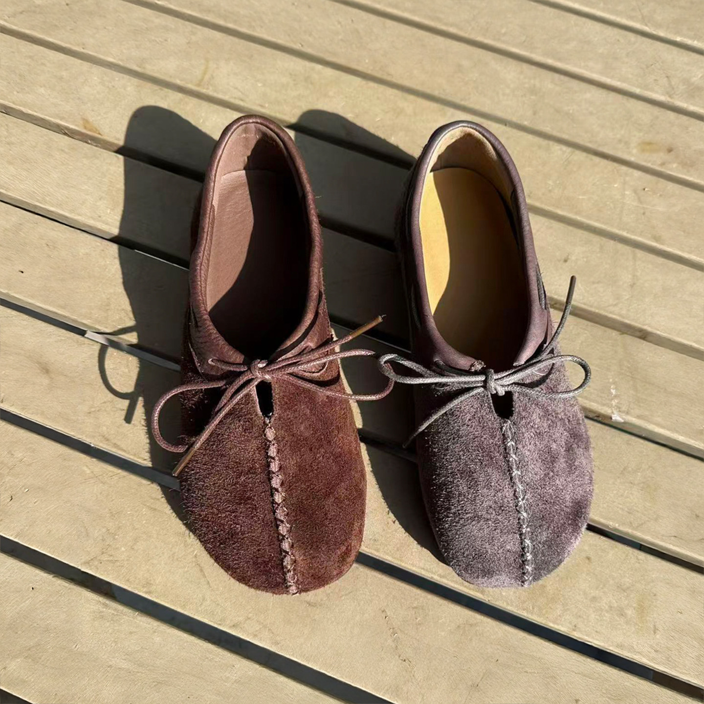 休闲风反绒皮系带真皮彩色单鞋女平底圆头百搭软底舒适女鞋118-1