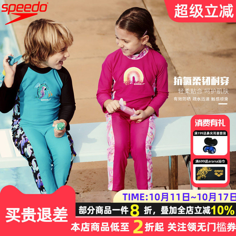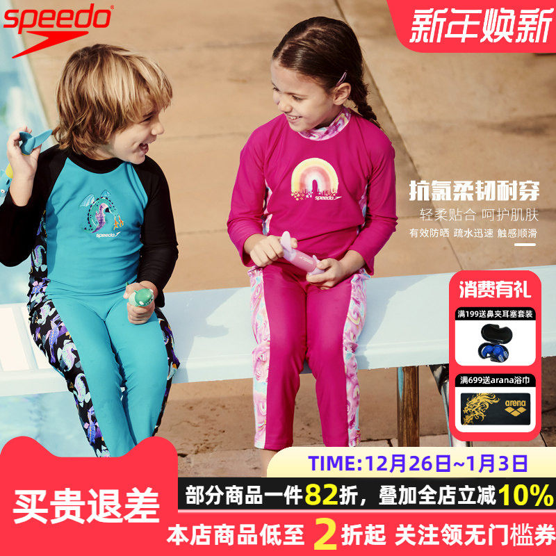 Speedo长袖长裤保暖儿童防晒泳衣柔软亲肤幼童耐穿海边度假泳装