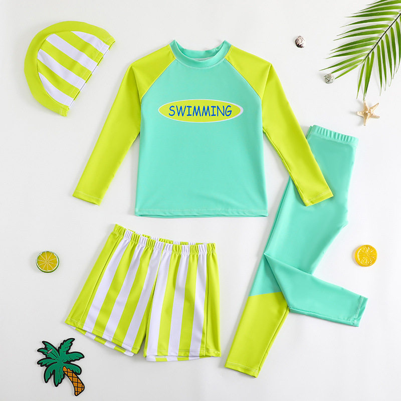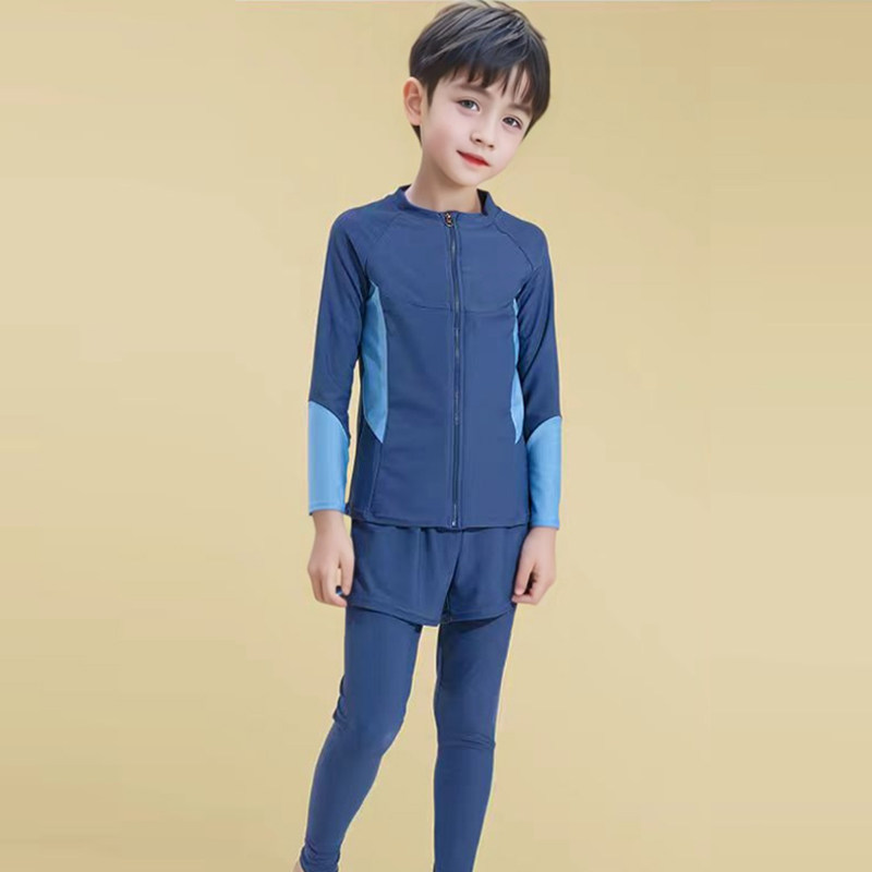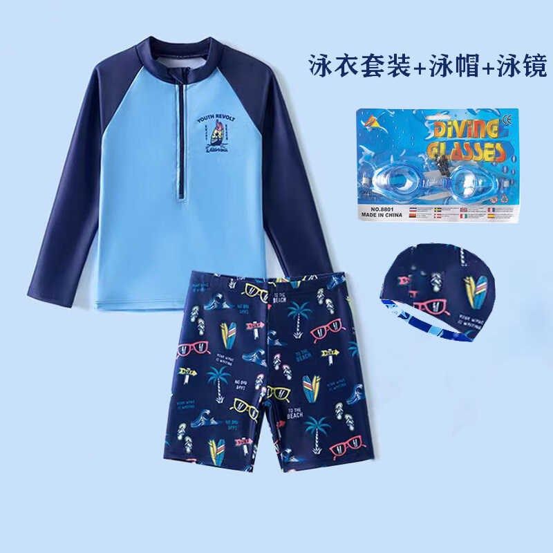 儿童防晒泳衣男孩中小童男童分体长袖温泉游泳衣泳裤海边度假套装