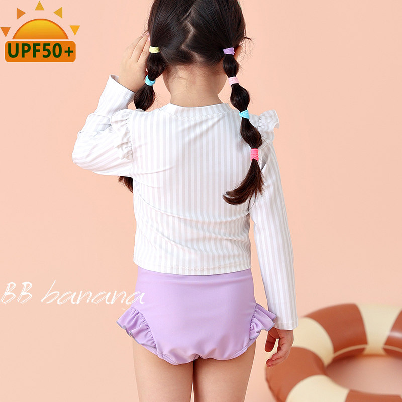 儿童防晒泳衣裙式分体女童速干长B袖夏季可爱沙滩小童保守公主泳