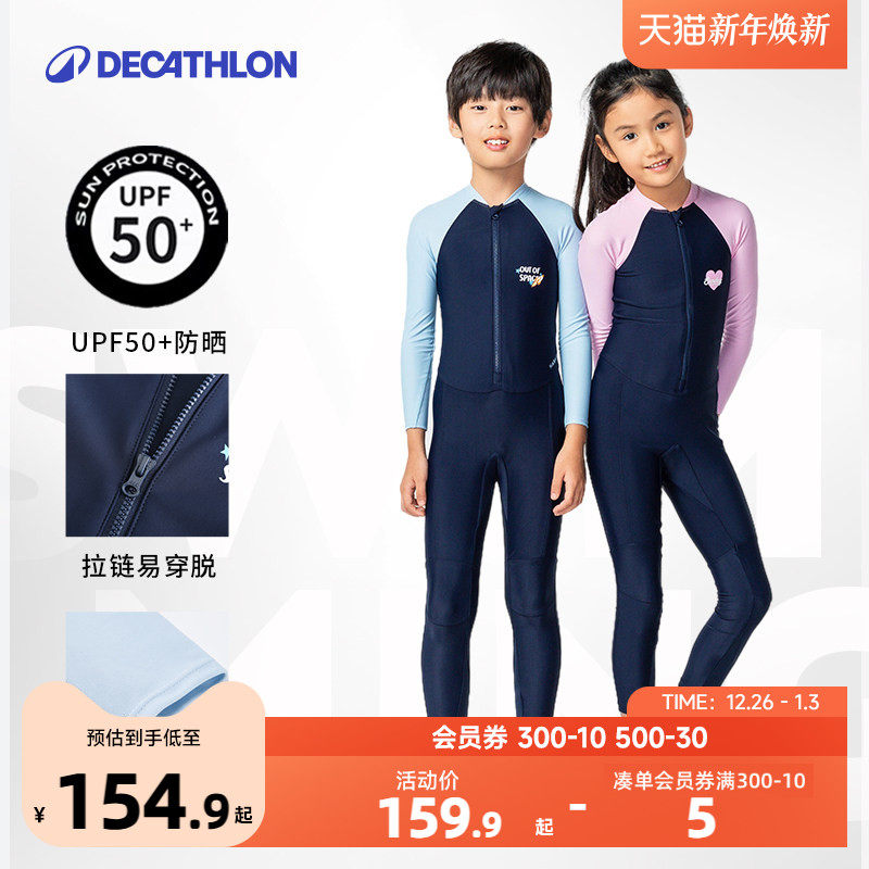 迪卡侬儿童防晒泳衣男童女童夏季宝宝游泳海边长袖连体泳衣KIDK