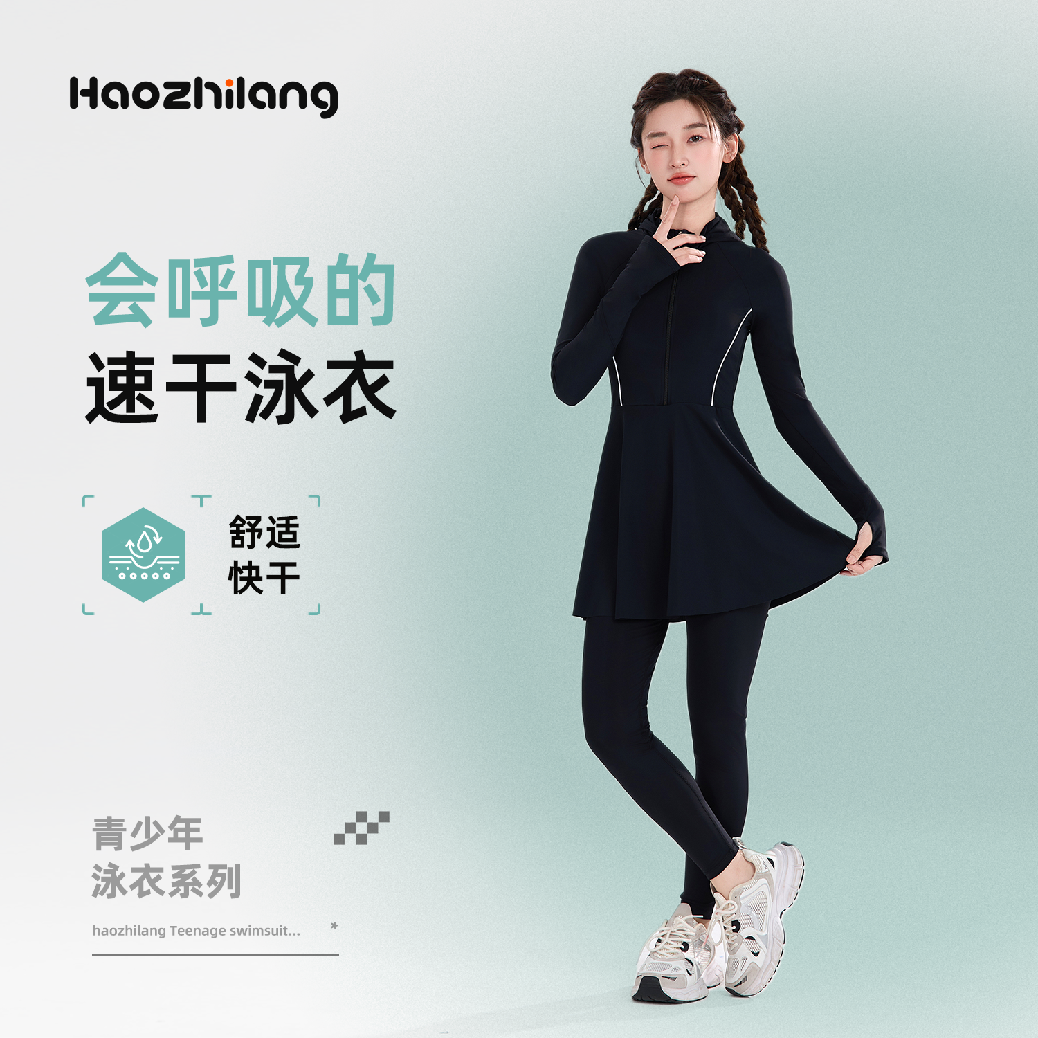 儿童防晒泳衣大童女孩长袖长裤海边冲浪速干7A抑菌初中生连体泳装