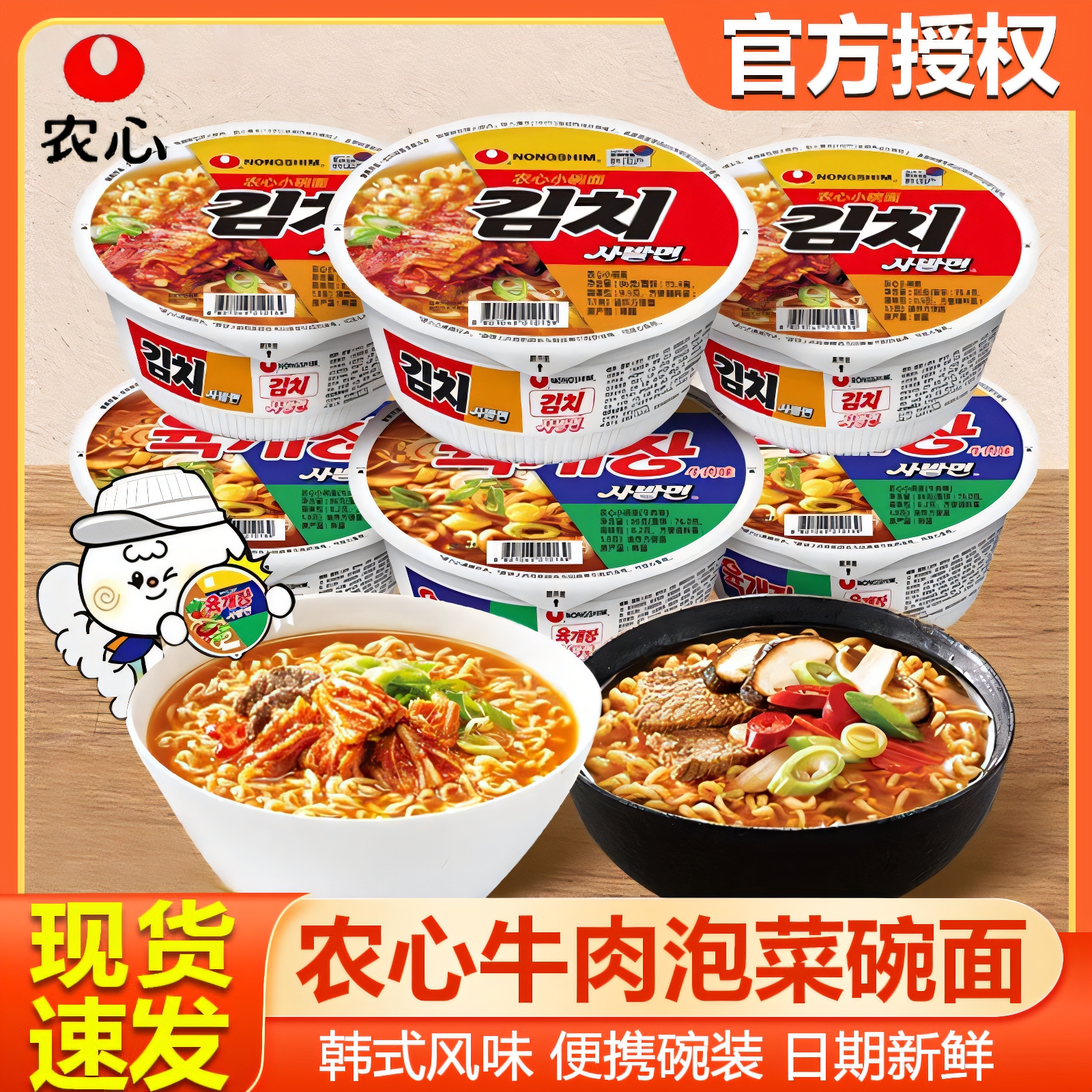 农心牛肉碗面辣白菜杯面韩国进口泡面韩式方便面泡菜味拉面桶装面