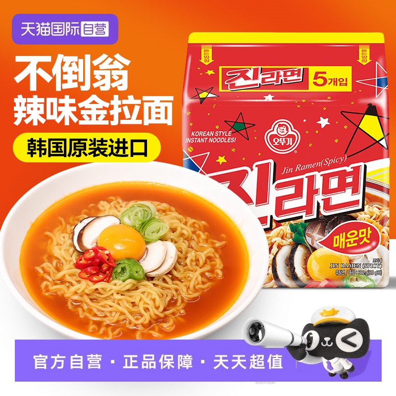 韩国不倒翁金拉面辣味进口泡面奥土基方便面煮拉面袋装汤面5连包