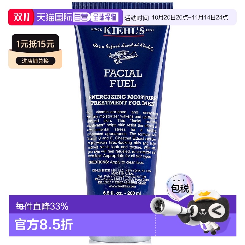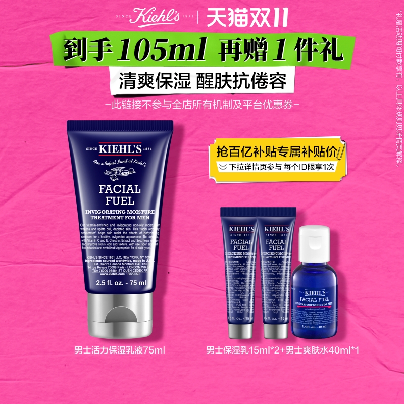 【双11现货抢购】科颜氏男士保湿乳液补水控油面霜送男友^百补