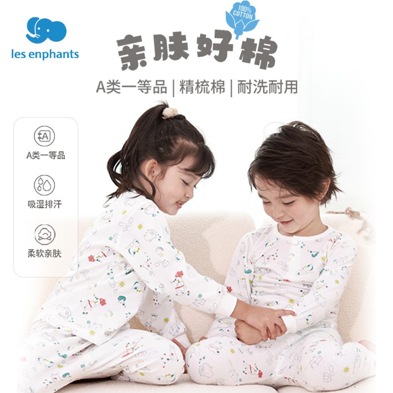 丽婴房儿童内衣套装纯棉女童秋衣秋裤中大童男宝宝内衣2023新品