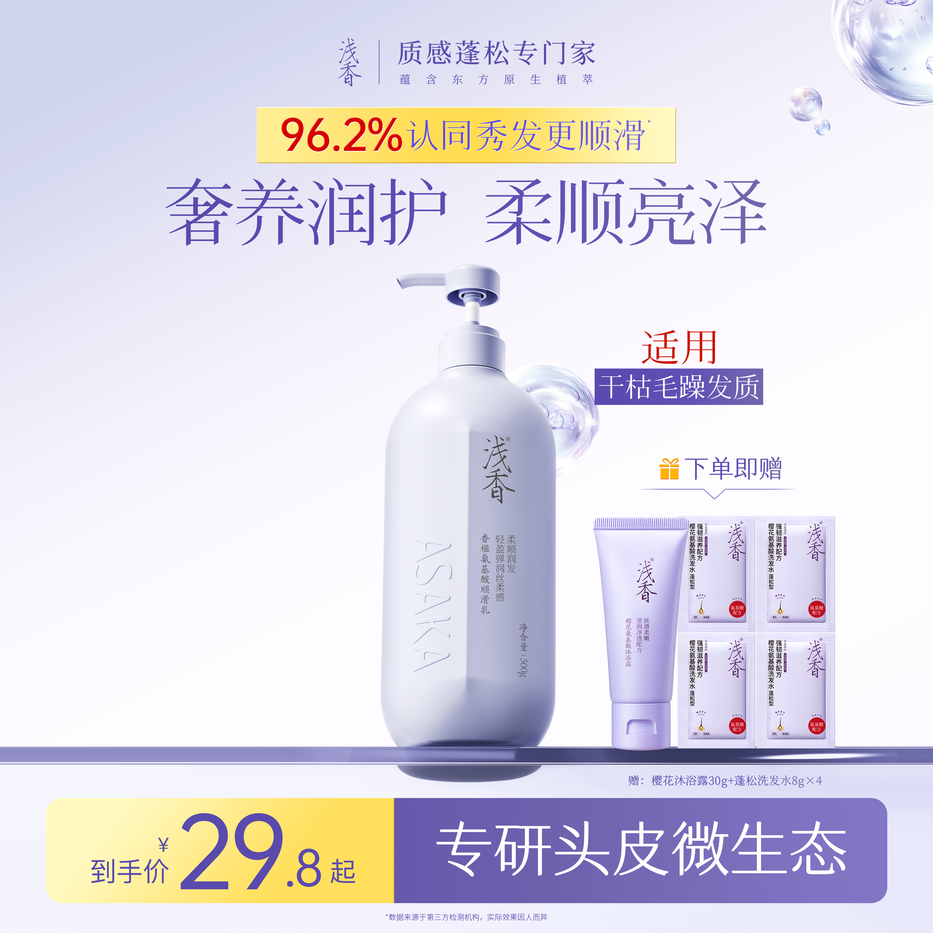 【加量不加价】浅香氨基酸洗护沐套装洗发水护发素沐浴露控油去屑