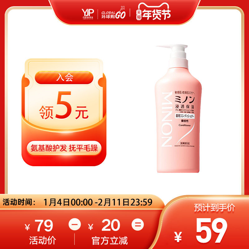 MINON蜜浓氨基酸护发素头皮保湿修护发根滋养顺滑450ml