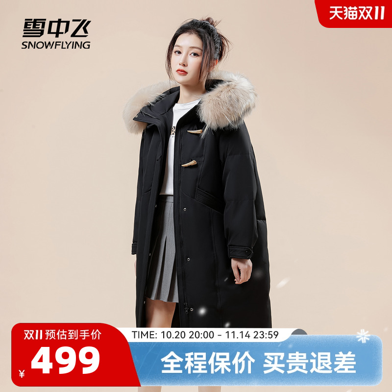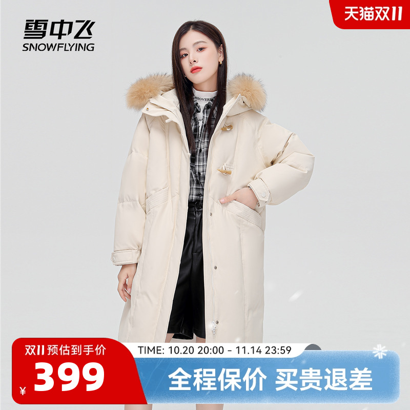 [专区3免1]雪中飞冬新款时尚百搭宽松奢华毛领女士牛角扣羽绒服
