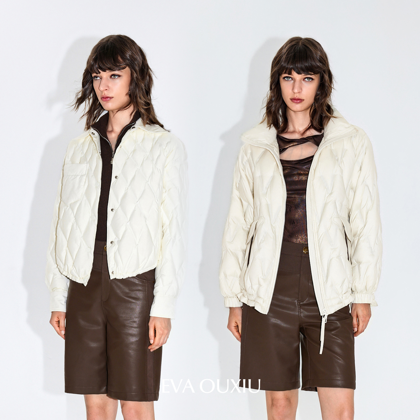 EVAOUXIU冬季新款女人味小廓形奢华气质优雅羽绒服舒适轻薄保暖