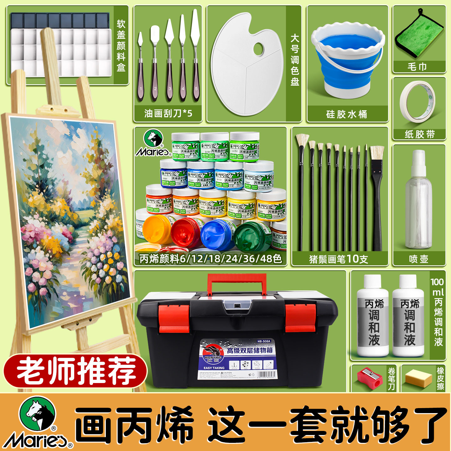 马利丙烯画颜料工具套装全套美术生专用艺考油画防水防晒不掉色儿童安全无毒画画涂色彩墙绘肌理画石膏衣服
