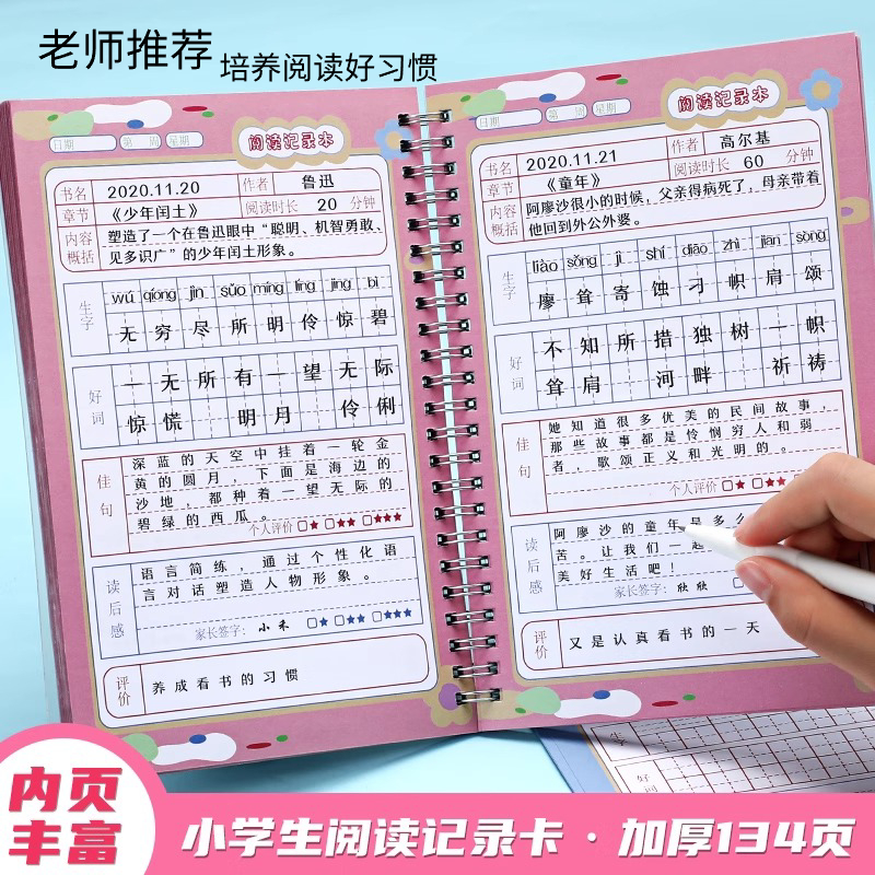 阅读记录卡学生奖励奖品小学生四到六年级不咯手加厚好词好句摘抄本课外读书记录本老师送学生的阅读笔记本