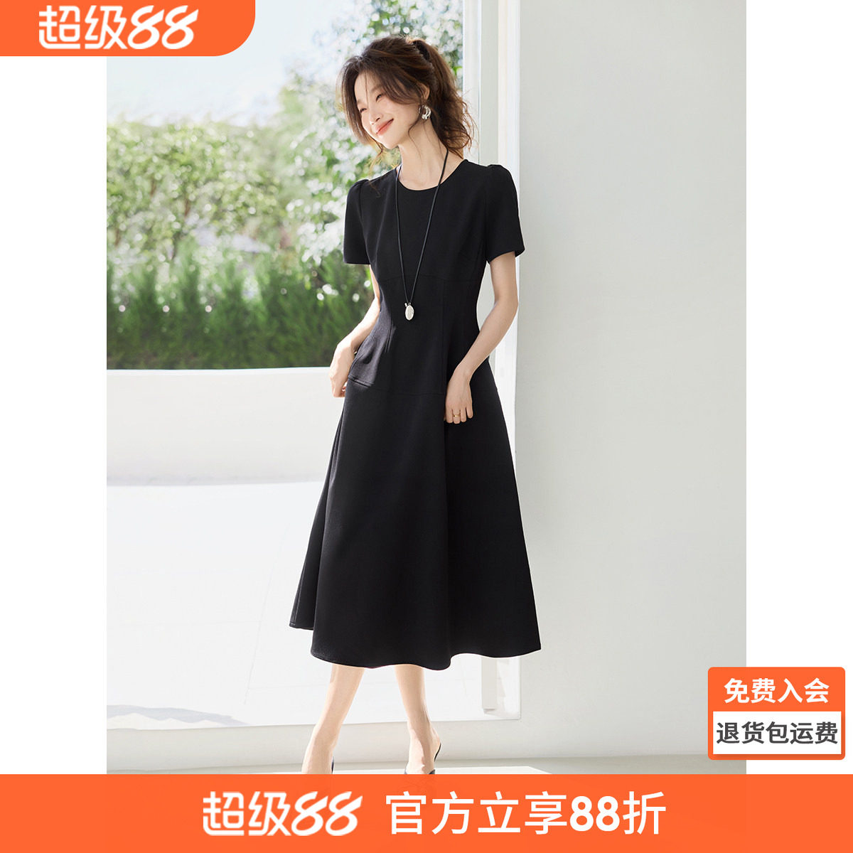 沫晗依美赫本风气质收腰轻礼服定制级小黑裙26夏季新款通勤连衣裙