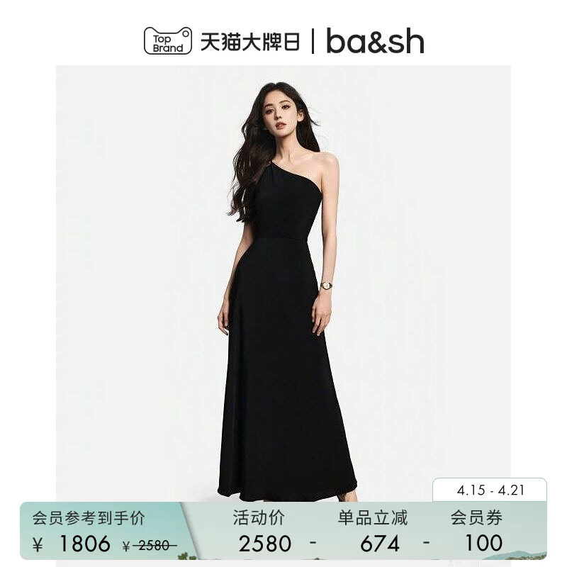 bash春季法式斜肩小黑裙连衣裙新年晚会派对礼服连身长裙1E25FINN