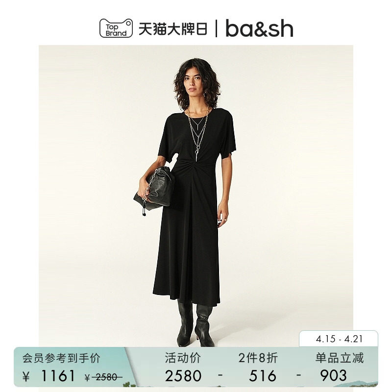 【2件8折】bash春季法式扭结纯色长裙礼服小黑裙连衣裙1H24JOLY