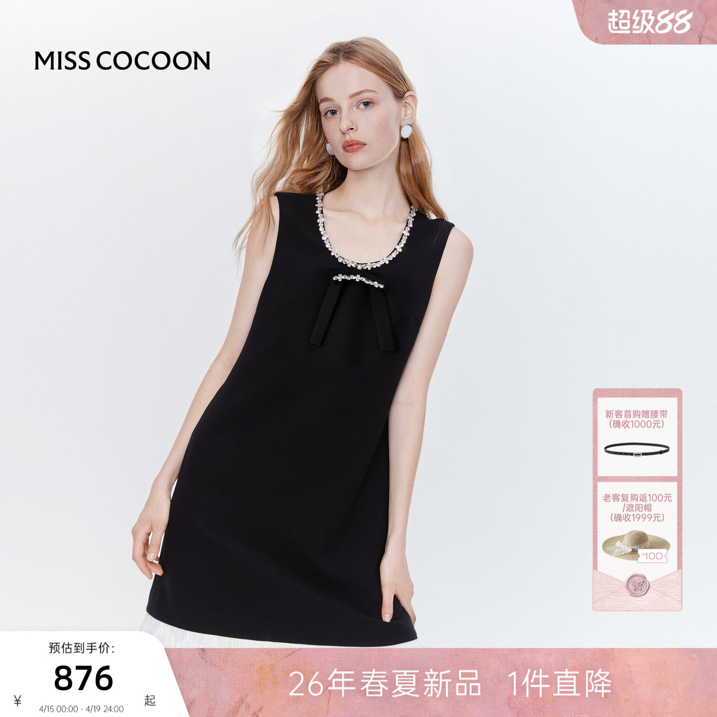 MISS COCOON可可尼无袖小黑裙礼服生日裙2026夏季新款千金连衣裙