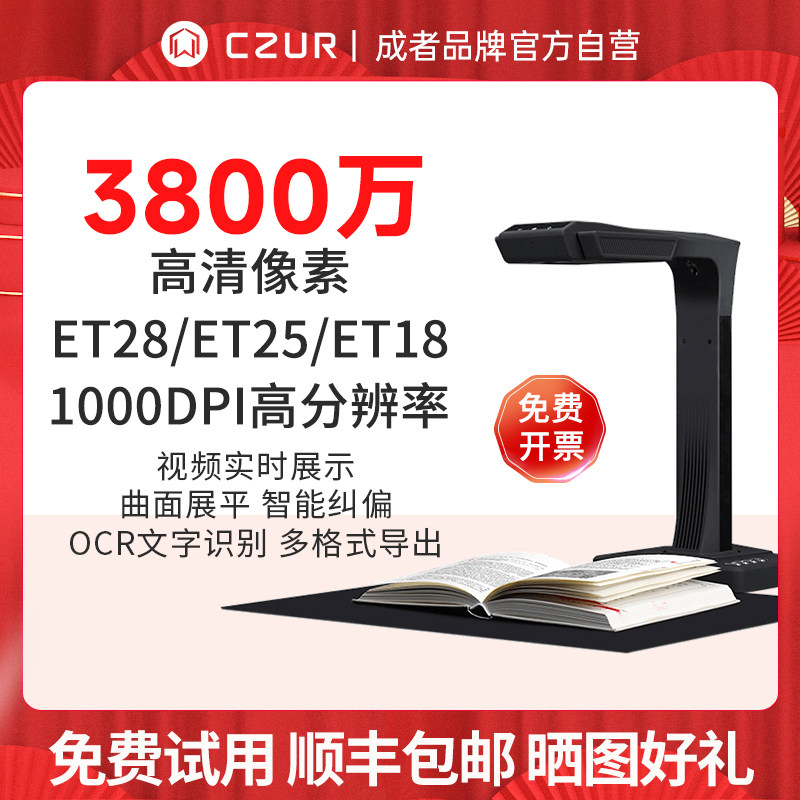 CZUR成者科技成册书籍免拆书本扫描仪办公连续快速自动高速高清高拍仪A3A4文件档案3800万ET28视频展台教学不