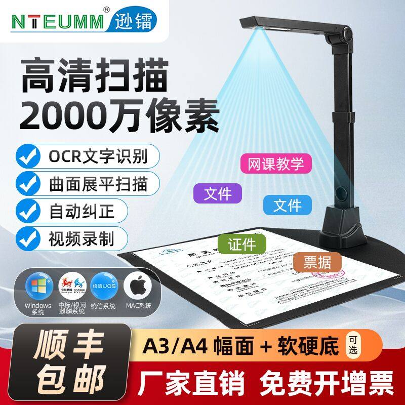 逊镭扫描仪高清2000万像素成册书籍展台高拍仪绘画证件发票办公教学A4A3文档PDF自动连续扫描识别高速扫描机