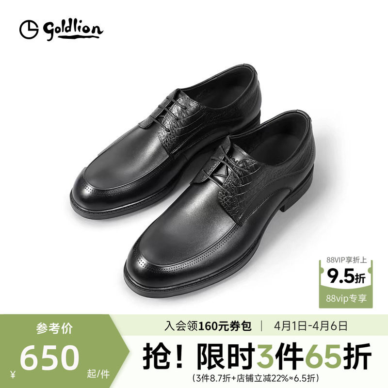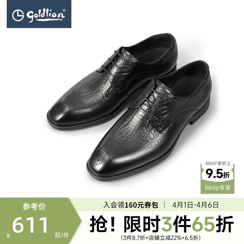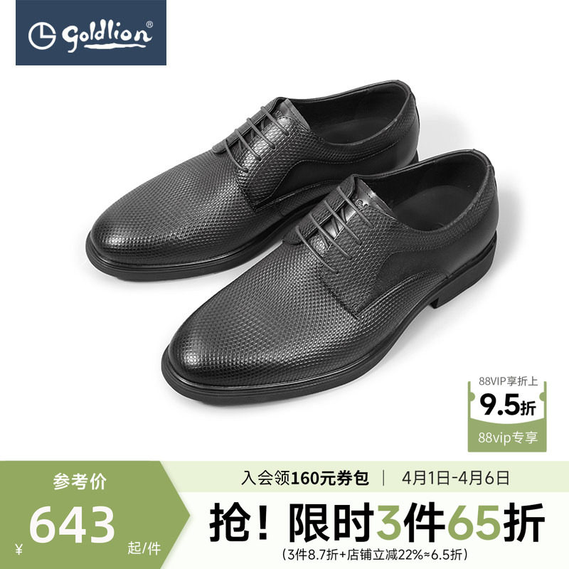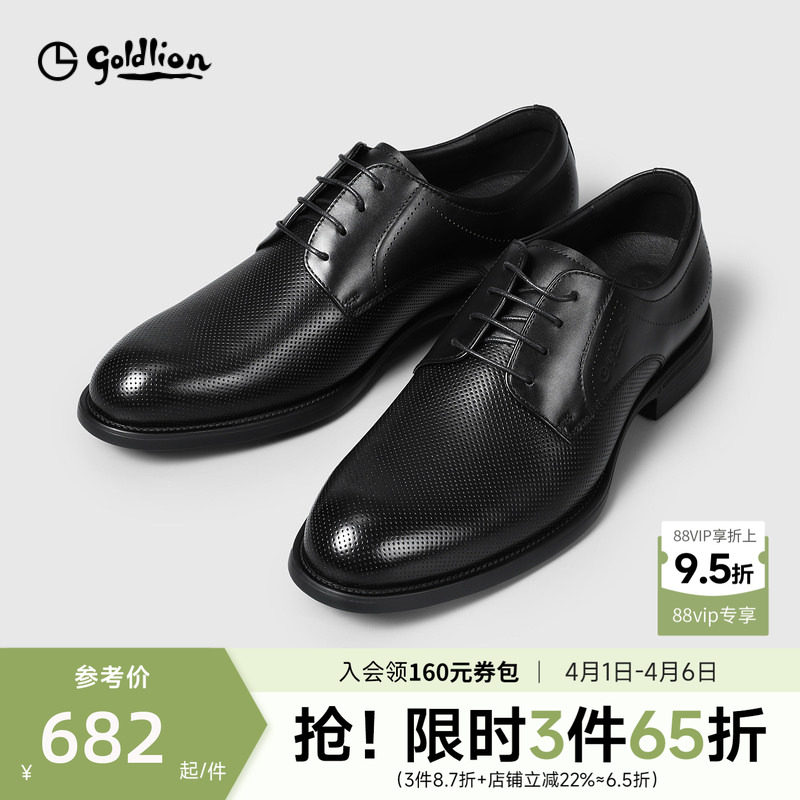金利来男士皮鞋新款商务正装鞋男士透气压花牛皮鞋真皮轻便德比鞋